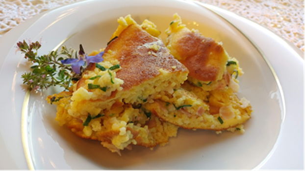 Praženec: 20 dag prosene kaše, 20 dag slanine, 20 dag pora, 16 dag masla, 8 jajc, 2,5 dl mleka, 24 dag moke, 4 dag kisle smetane, sol, muškatni orešček, 50 g masla, šopek drobnjaka, 6 dag lipovega medu.