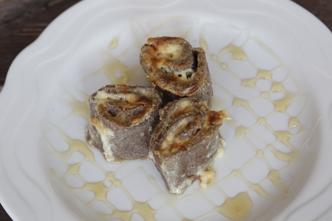 Ajdovo moko prelijemo s kropom, premešamo in narahlo pregnetemo v testo. Pustimo ga počivati 30 minut. Nato na pomokani deski testo razvaljamo za nožev rob na debelo. Iz navedenih sestavin zmešamo nadev in ga namažemo po razvaljanem testu. Potresemo ga z orehi. Testo zvijemo in ga razrežemo na približno 6 cm dolge štrukeljce. Pokonci in tesno drug ob drugem jih postavimo v namaščen pekač. Prelijemo jih z nekoliko osoljeno sladko smetano in za vsaj 45 minut postavimo v pečico, segreto na 200 stopinj C. Posrkati morajo vso smetano in ostati sočni. Pečene pokapamo z medom.